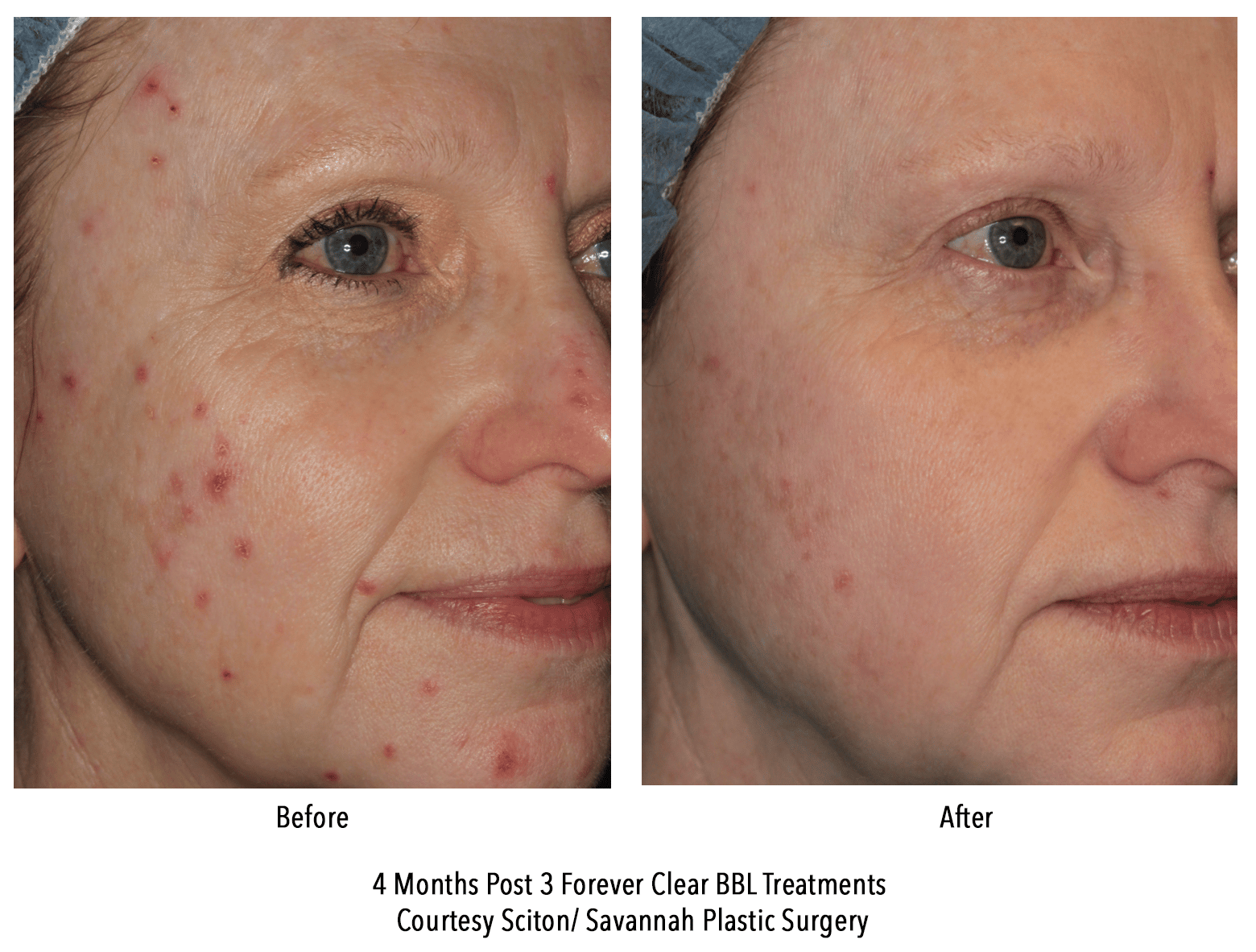 At Jeffrey C. Dawes Plastic and Dermatologic Surgery in Calgary, Forever Clear BBL is used for skin with acne – first a blue BBL is used to remove bacteria in the pores that causes acne, and then a yellow BBL is used to reduce redness and inflammation. Why deal with the wait and potential side effects of those options when you can have clearer skin in typically just a few short treatments!
