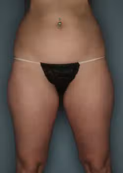 Liposuction to bilateral saddle bags (outer thighs) and inner thighs and central abdomen – 2 Months Post-Op